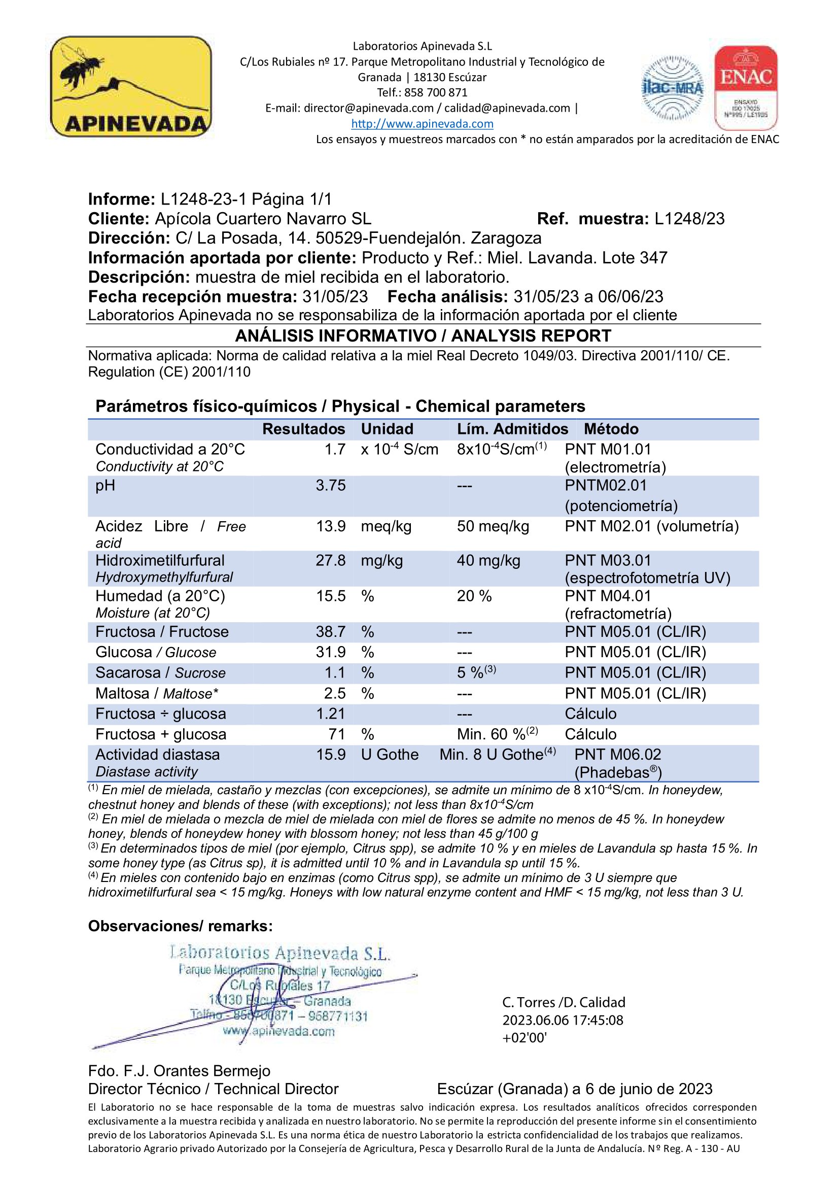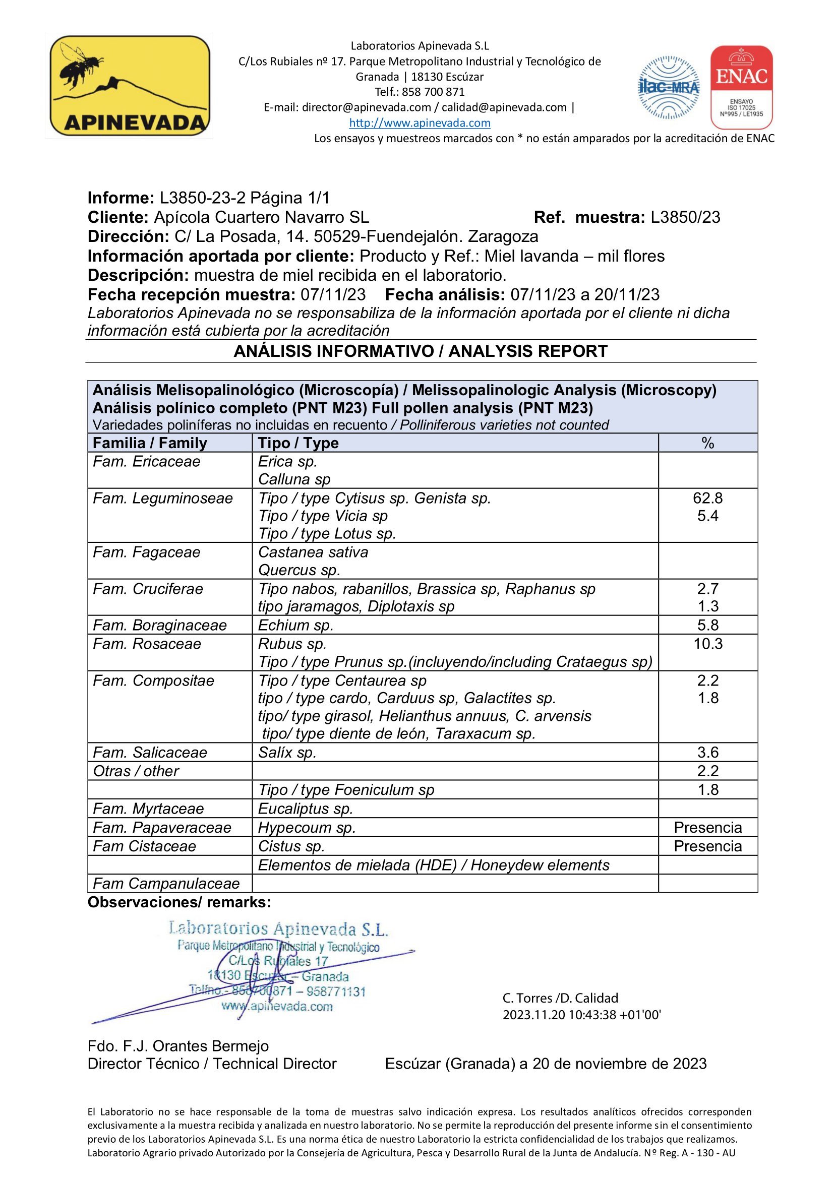 يمكن الاطلاع على الفحوصات والتحاليل الخاصة بعسل الخزامى المزروعة: